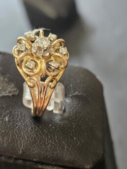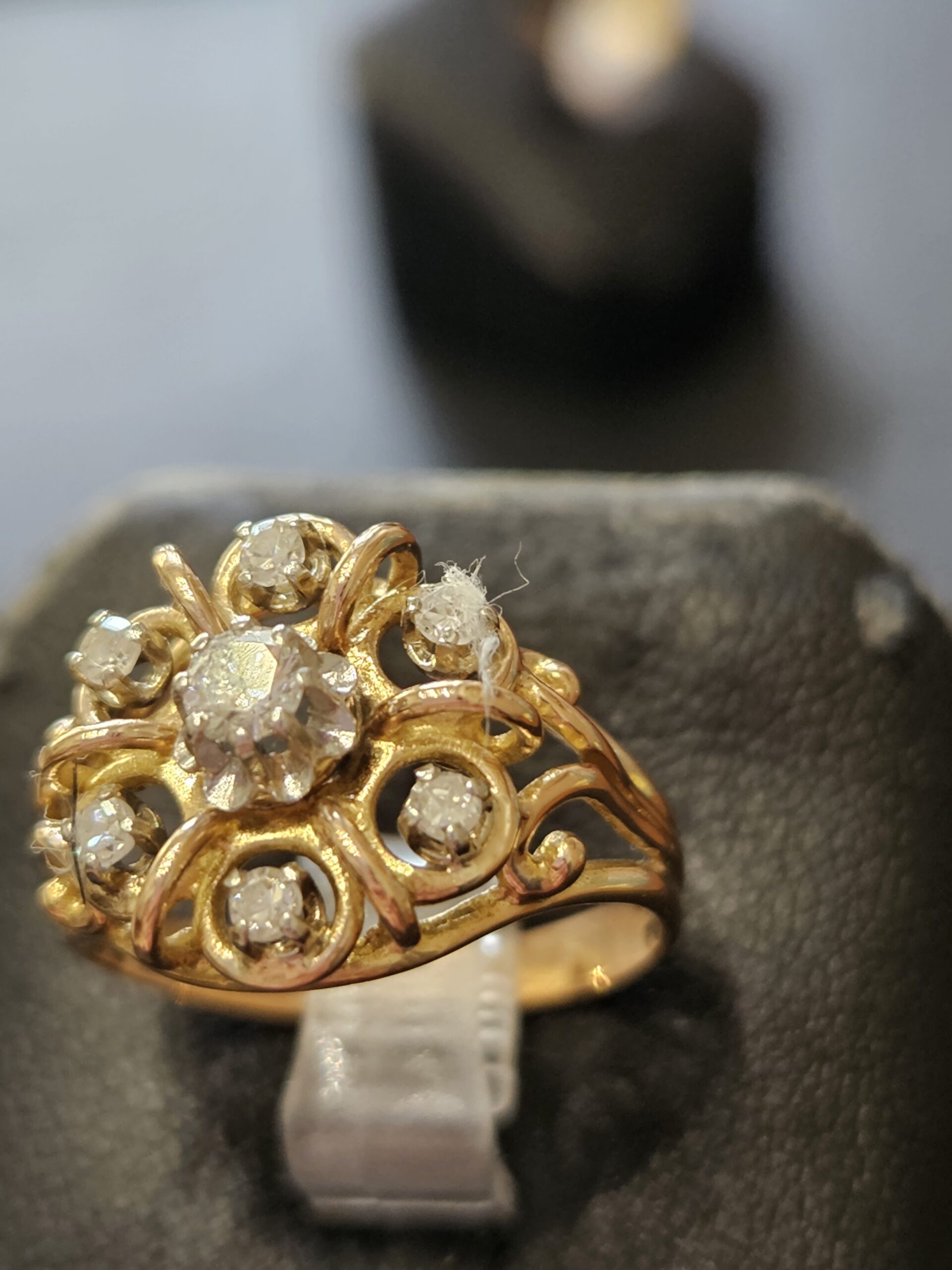 Magnifique bague des années 1950-1960 en or 18 carats forme  » marguerite  » ornée de diamants