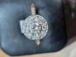 Superbe bague en or 18 carats forme » marguerite » ornée de 8 diamants . La personne qui portait cette bague travaillait chez CARTIER , et, a acheté ce bijou chez CARTIER , mais celui-ci n’en porte pas mention