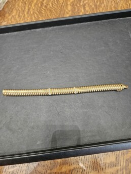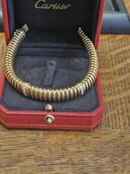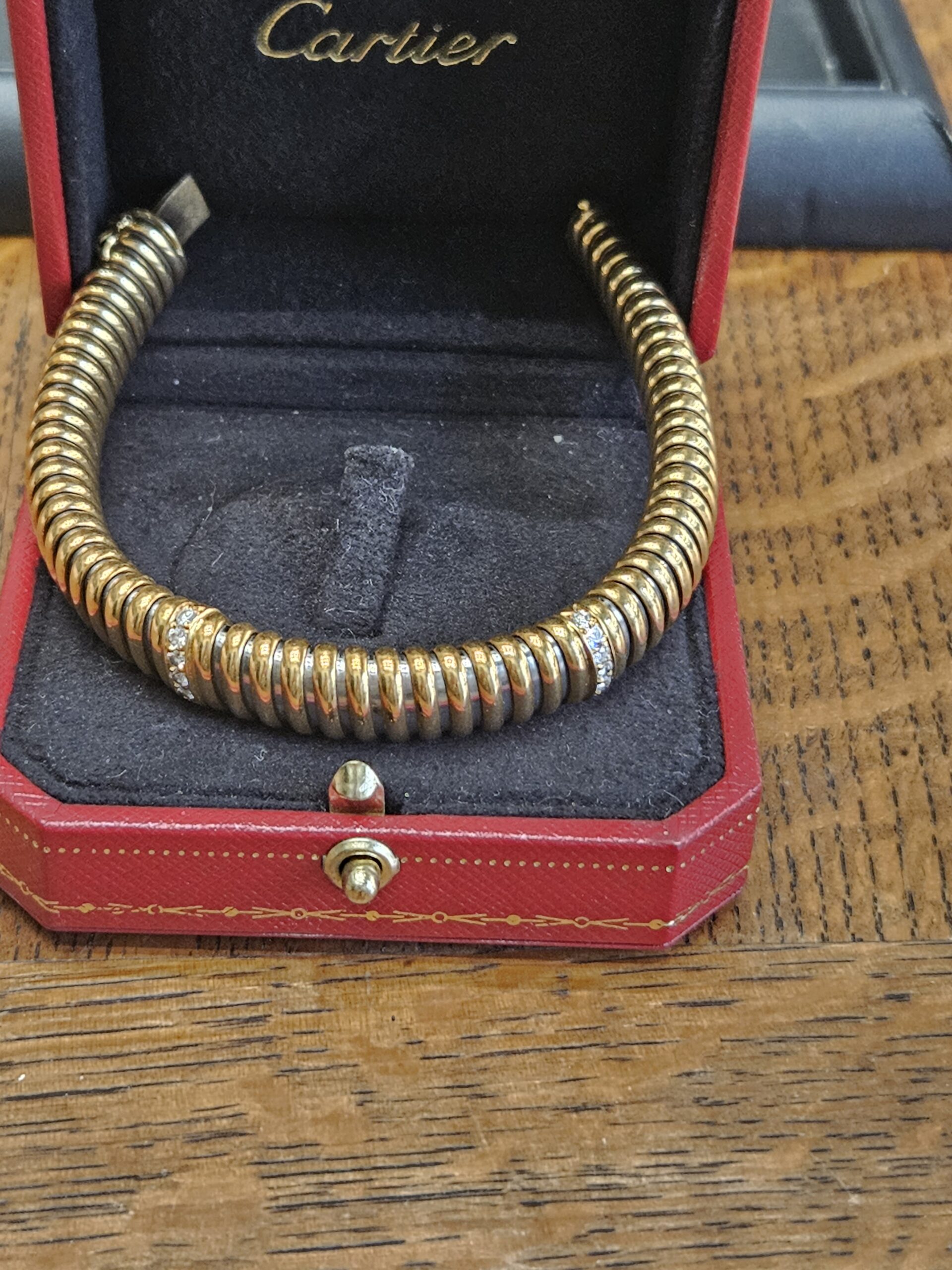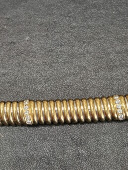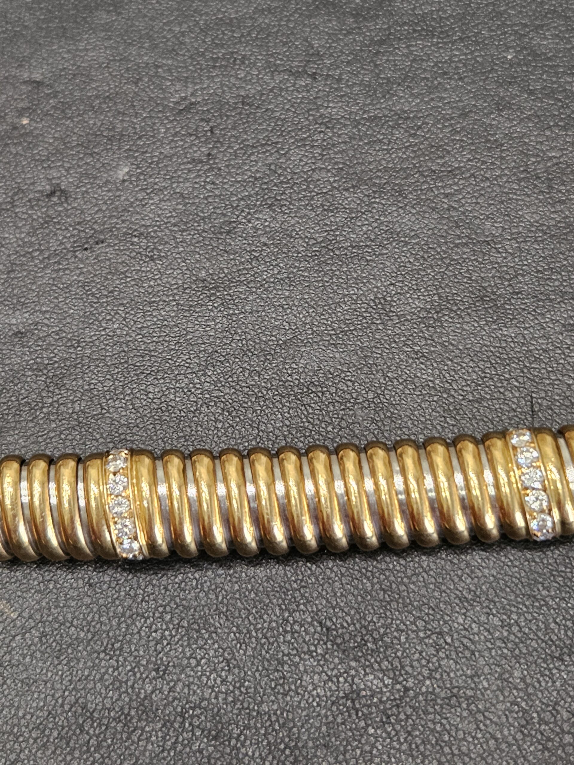 Superbe bracelet » CARTIER » en or 18 carats d’ un style « Tubogaz » très en vogue dans les années 1940 , ce bracelet est orné de deux rangees de diamants