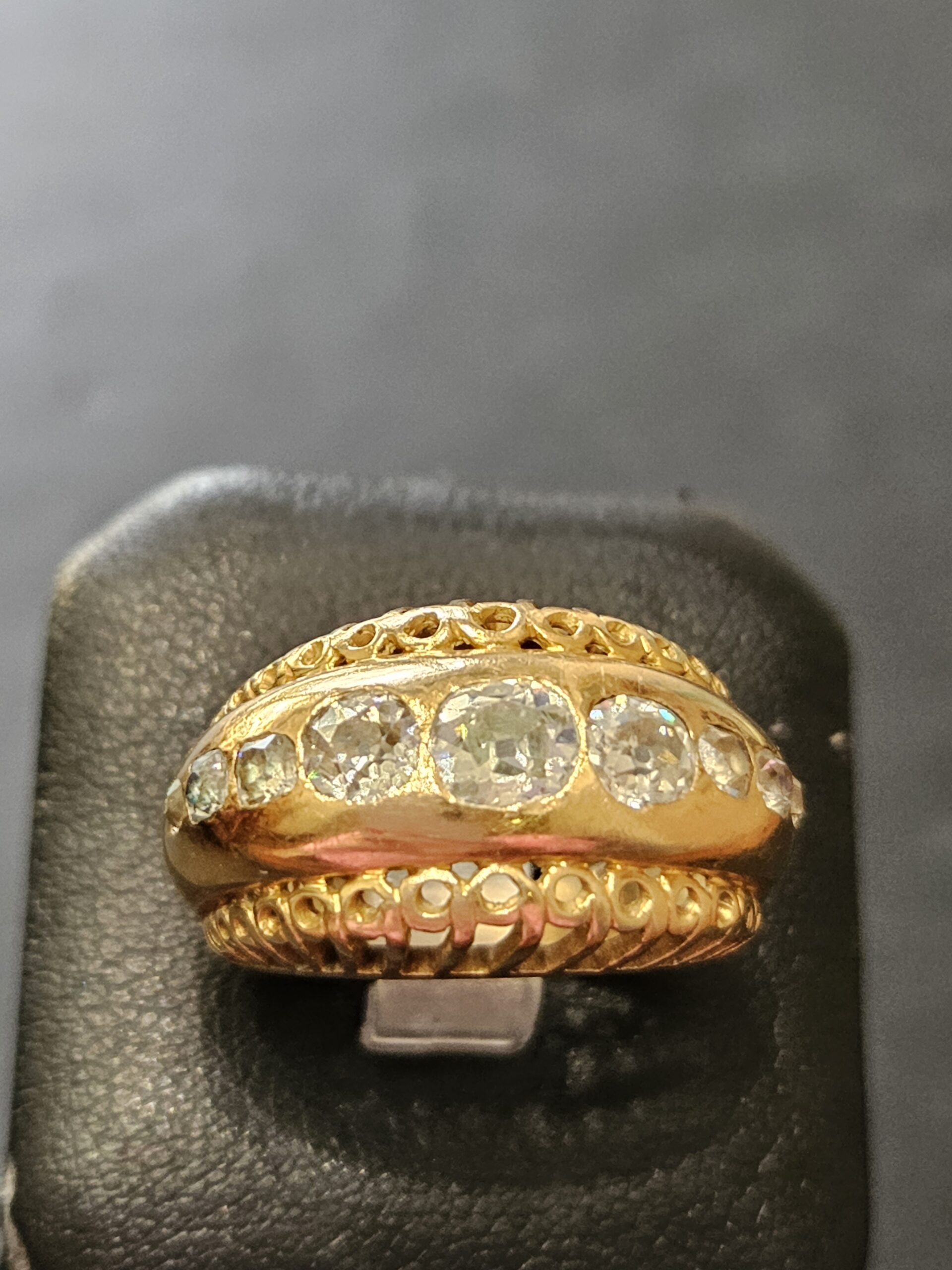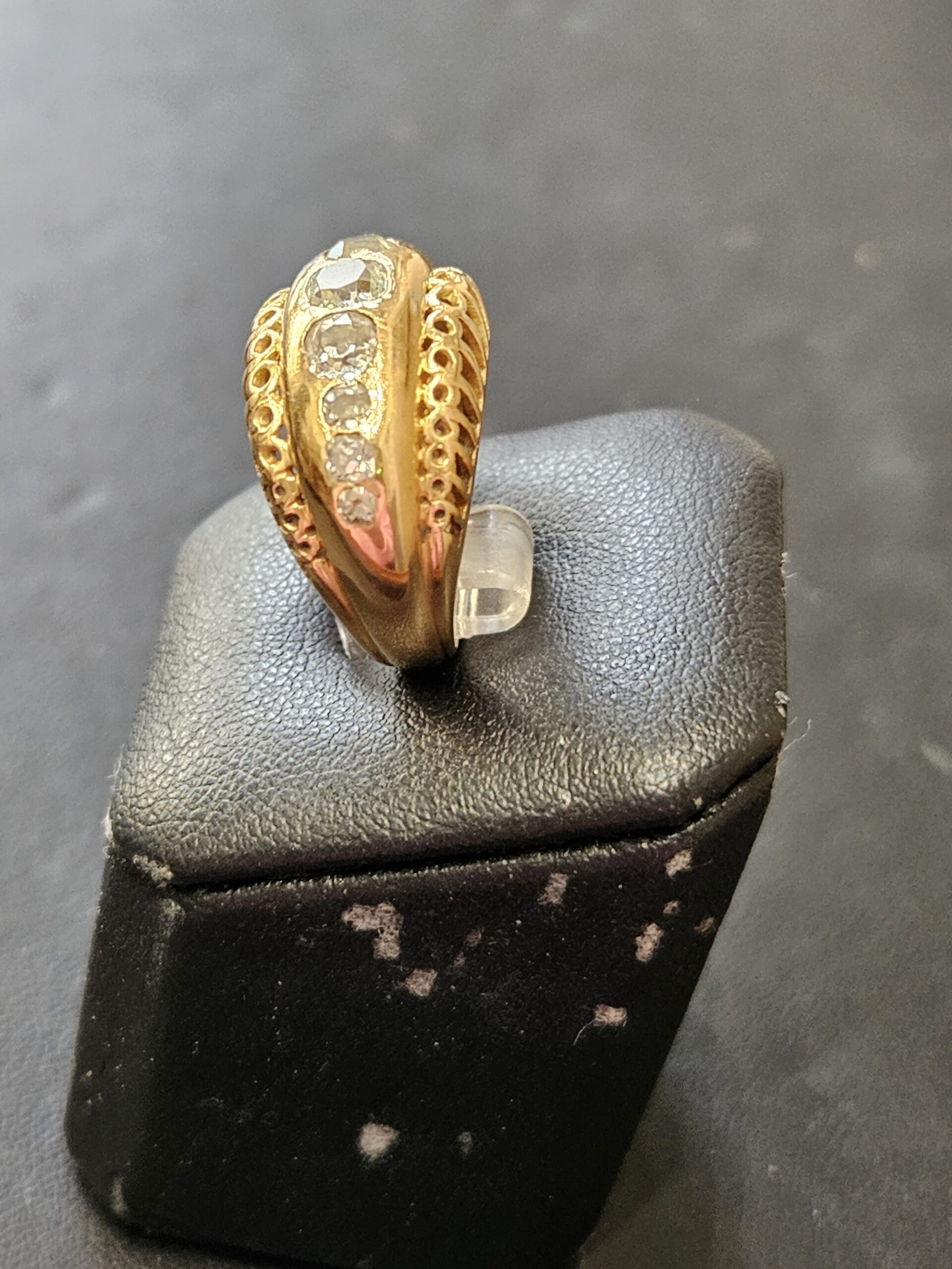 Très belle bague en or 18 carats ornée de 7 diamants montés en serti clos . Années 1950