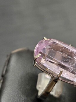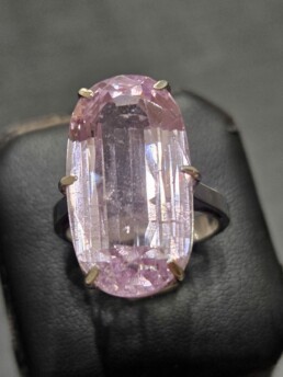 Très jolie bague en or 18 carats, ornée d’une très belle kunzite octogonale rose années 1960